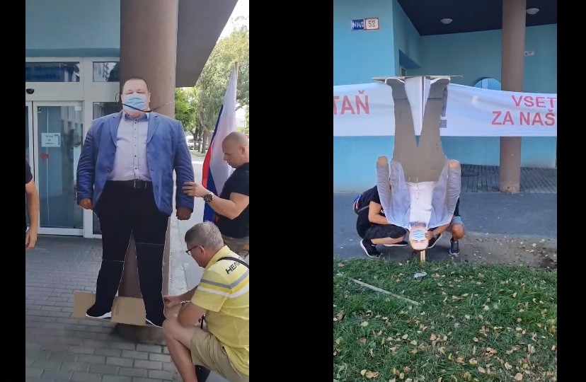 Symbolom protipandemických opatrení, voči ktorým nespokojná skupinka občanov protestuje, sa stal hlavný hygienik Ján Mikas. Maketu s jeho podobizňou v životnej veľkosti už nechali visieť dole hlavou, potom ju chceli hodiť do kontajnera a dnes ju zavesili na stĺp pred sídlom Úradu verejného zdravotníctva, pričom mu čiernu pásku omotali okolo krku...