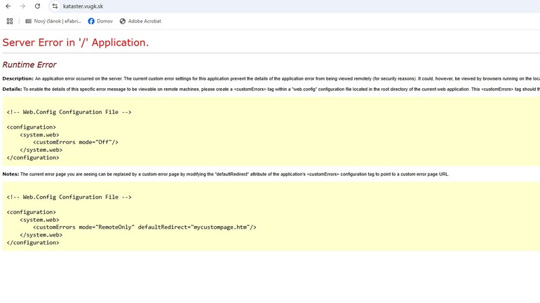 Na stránke sme sa pokúsili vyhľadať údaje. Úvodnú stránku otvorilo, no keď sme si chceli pozrieť listy vlastníctva, po chvíli "vyhodilo error".