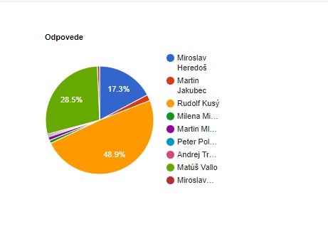 Najväčší počet z vás, až necelých 49 percent by na stoličke primátora videlo najradšej Rudolfa Kusého, ktorému ste odovzdali 3302 hlasov. Na druhom mieste skončil súčasný primátor Matúš Vallo 29 percent (1925 hlasov) a tretí Miroslav Heredoš 17 percent (1165 hlasov). Zisky ostatných kandidátov sú oveľa nižšie. Martin Jakubec získal dve percentá (122 hlasov), nasledujú jednopercentní Martin Mlýnek (71 hlasov), Milena Minichová, ktorá sa kandidatúry vzdala (62 hlasov) a Miroslav Vetrík (46 hlasov). Andrej Trnovec (31) a Peter Poláček (29) nedosiahli ani jedno percento.