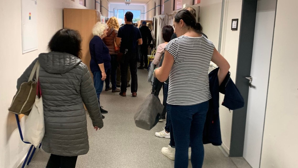 Muž za mnou sa pýta, či by si nemohol lístky vypísať pri voľnom stolíku alebo priamo čakajúc v rade. Ani to nejde, informujú ho členovia komisie. Jeho lístky by boli neplatné. Vzdychne si, že nabudúce by bolo lepšie urobiť voľby v školských telocvičniach, kde by si okrsky plenty zdieľali. Takýto rad by nehrozil. Tak si aspoň svojich kandidátov na lístku fotí, aby ich v abecednom zozname nemusel hľadať až za plentou. Šetrí tým čas aj ostatným.