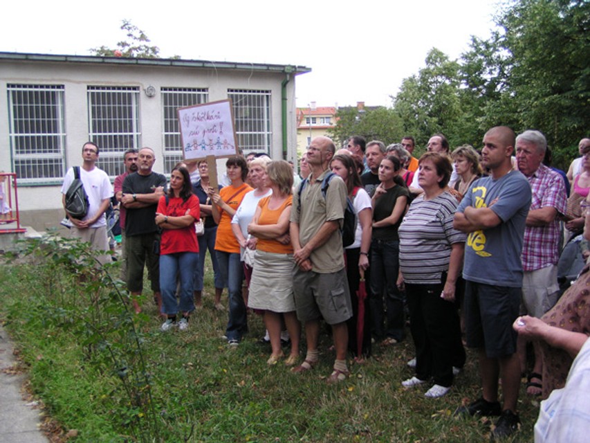 Asi 100 obyvateľov ulíc bývajúcich na Letnej a Hálkovej ulici vo štvrtok odmietlo ponuku investora, ktorého zastupuje mestský a novomestský poslanec za SDKÚ-DS Gert Duni, že ako kompenzáciu za výstavbu dá pre školu tri milióny korún. Väčšina prítomných občanov sa vyslovila proti akejkoľvek výstavbe v areáli materskej školy a bývalých jaslí.