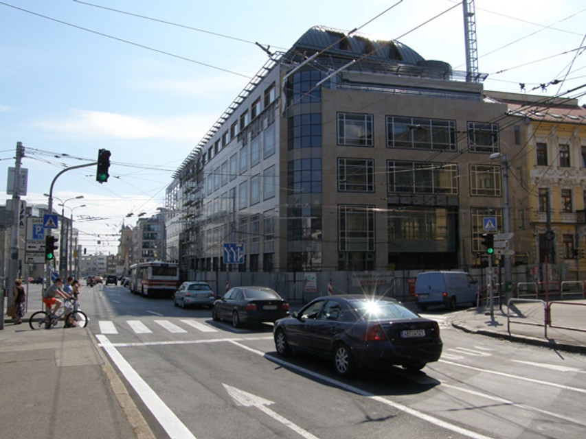 Výstavba polyfunkčného domu Astoria Palace na Hodžovom námestí finišuje, počas uplynulého víkendu sa rekonštruovali trolejové trate v jeho okolí. Jazdný pruh zabratý stavbou by mal byť uvoľnený do konca augusta.