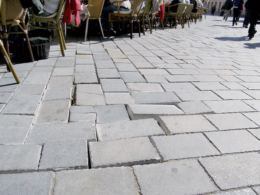 Na dlažbu v pešej zóne samospráva ročne minie niekoľko stotisíc korún, v skutočnosti by však potrebovala milióny, alebo - absolútny zákaz vjazdu vozidiel.