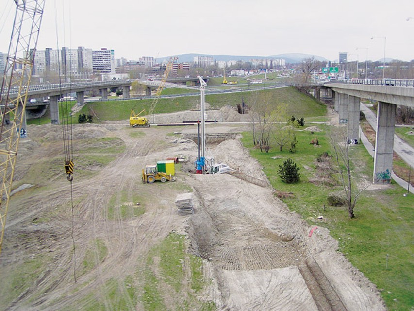 Ako potvrdzuje aktuálny pohľad z Prístavného mosta, dodávateľ stavby - Doprastav, začal s hĺbením základov pre piliere diaľničnej estakády.