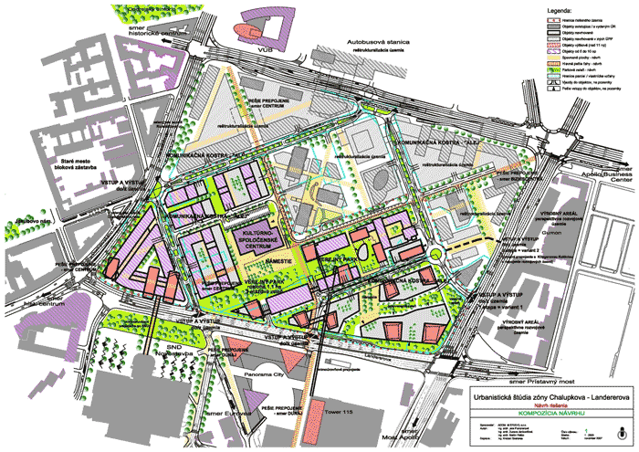 „Na rozdiel od dosiaľ predložených štúdií, táto vychádza z princípu vytvárania vonkajších verejných priestorov v duchu nového európskeho štandardu založeného na množstve parkovej zelene a atraktívnych námestiach. Štúdia navrhuje vznik nového mestského parku s rozlohou a proporciami porovnateľnými s Hviezdoslavovým námestím.“
