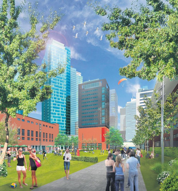 Park a námestia budú obklopené budovami pre nadštandardné bývanie, kultúru, administratívu, hotely, obchod a služby. Výškové budovy s podlažnosťou od 24 do 45 poschodí budú situované v okrajových častiach zóny, pričom najvyššia je v blízkosti Mosta Apollo. Park s rozlohou