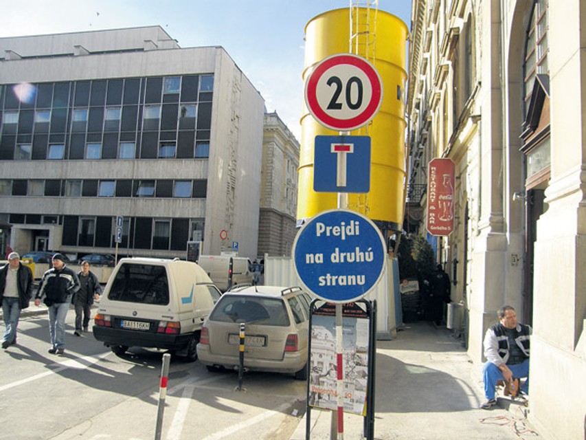 Od Stavebného úradu Starého Mesta má firma povolenie zabrať 50 m˛ vozovky a 60 m˛ chodníka. Už samotný fakt obmedzenia pohybu najmä chodcov je nepríjemný, horšie bolo, že od decembra, keď začali montéri zvážať súčasti strojov, nebola prekážka pohybu vyznačená.
