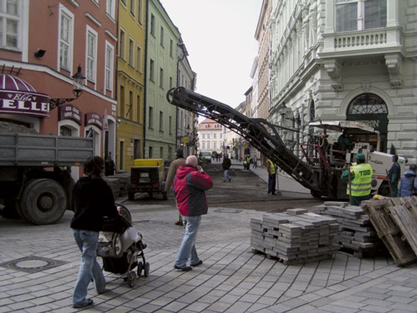 Hlavné mesto spolu so samosprávou Starého Mesta vymieňa v historickej časti poškodenú a uvoľnenú dlažbu, ktorej stav je už dlhodobo terčom kritiky. Chodci sú v týchto dňoch nútení dávať si väčší pozor na nástrahy v pešej zóne kvôli prítomnosti ťažkých mechanizmov, zvýšeného hluku v podobe charakteristického zvuku pípania pri cúvaní veľkých vozidiel či obmedzenejšieho pohybu.
