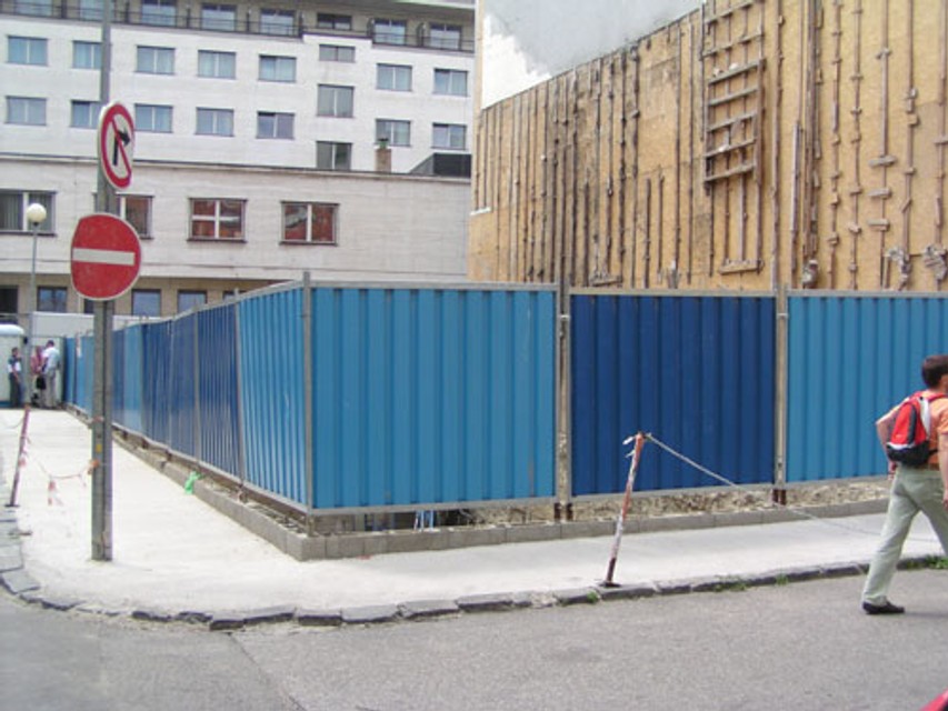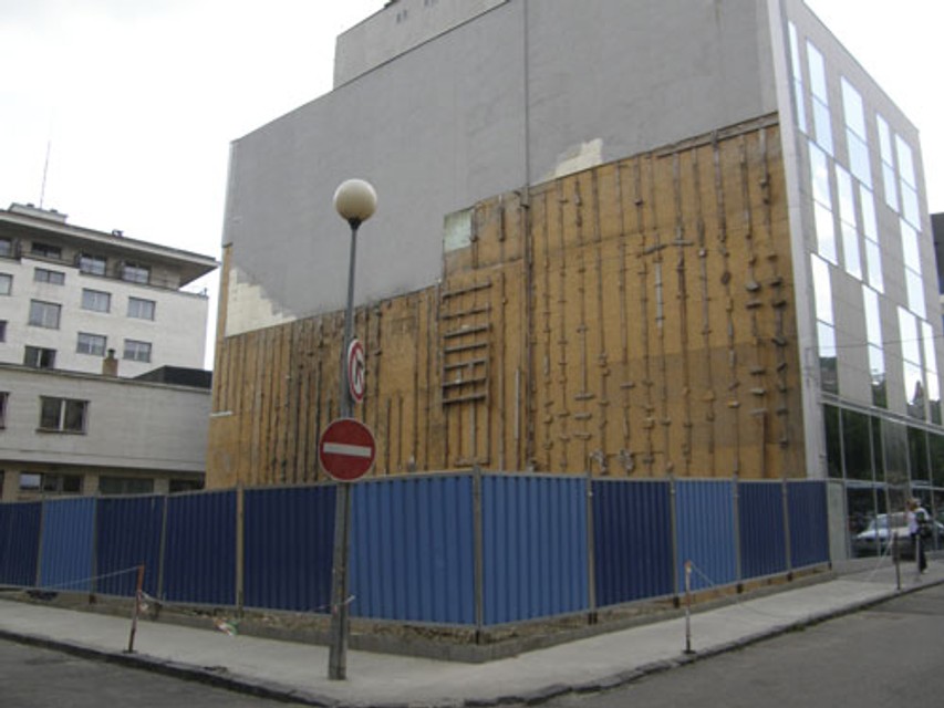 Na tabuli na oplotení lemujúcom stavebnú jamu sa možno dočítať, že stavebník, spoločnosť P.G.G. Invest tu uskutočňuje rekonštrukciu a nadstavbu objektu, ale keďže pôvodná stavba je preč, môže už nanajvýš postaviť len jej repliku. Zisťovali sme, či je to v poriadku a či takéto počínanie odobril aj staromestský stavebný úrad.