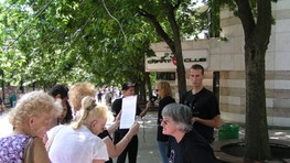 Protestná akcia proti výstavbe viladomov v mestskej časti Devín sa začala dnes po 11. h na Poštovej ulici v centre hlavného mesta. Petíciu podpísalo za pol hodiny 46 občanov, jej internetovú verziu zatiaľ 600 občanov.
