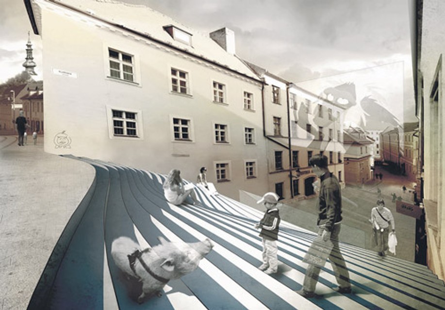 „Nezmyselnú podestu vo vrchnej časti navrhujeme prestavať na pobytové schody s vedľajšou funkciou exteriérovej letnej čitárne pre mestskú knižnicu a príležitostného kina,“ mienia autori návrhu.