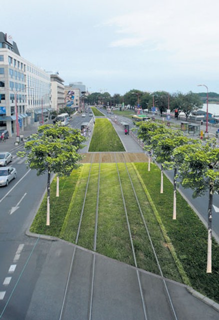 V tomto prípade ide o skrášlenie električkových tratí zeleňou a nejde len o dunajské nábrežie. Návrhu dali autori názov Zelená línia.