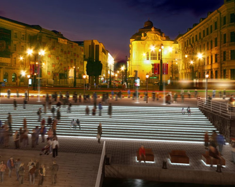 Okrem drobných úprav dostala myšlienka prepojenia Korza s druhou úrovňou promenády novú dimenziu. Ide o tzv. Dunajské schody, ktoré vzniknú v nábrežnej hrane smerom od Reduty k Dunaju v celej šírke Námestia Ľ. Štúra. Vznikne tým prirodzené vyústenie korza, ktoré privedie ľudí priamo k rieke. Schody umožnia pohyb chodcov smerom na plánovanú druhú a tretiu úroveň promenády a budú vstupnou bránou do centra pre turistov z osobných lodí. Dunajské schody budú osvetlené.