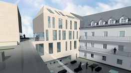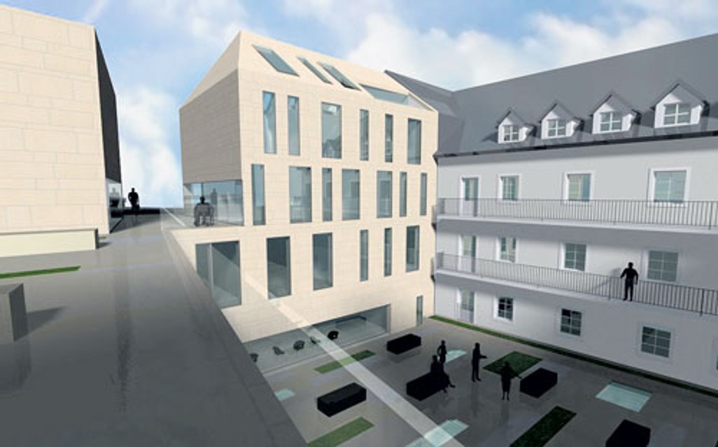 Tieto dve hmoty sú spojené na spoločnej podnoži, a tým vytvárajú kompaktný celok. Jedna časť objektu dopovedá charakter zástavby na Kapucínskej ulici, druhá vytvára v prostredí akúsi pridanú hodnotu niečoho nového. V objekte sú zahrnuté rôzne funkcie - nachádza sa tu napríklad miesto na prezentáciu histórie opevnenia mesta, ako aj histórie Židovskej ulice, ďalej sú tam priestory pre kaviarne, obchodné priestory, prednáškové a administratívne priestory, ktoré by slúžili potrebám mesta, a je tu aj miesto pre informačné centrum.