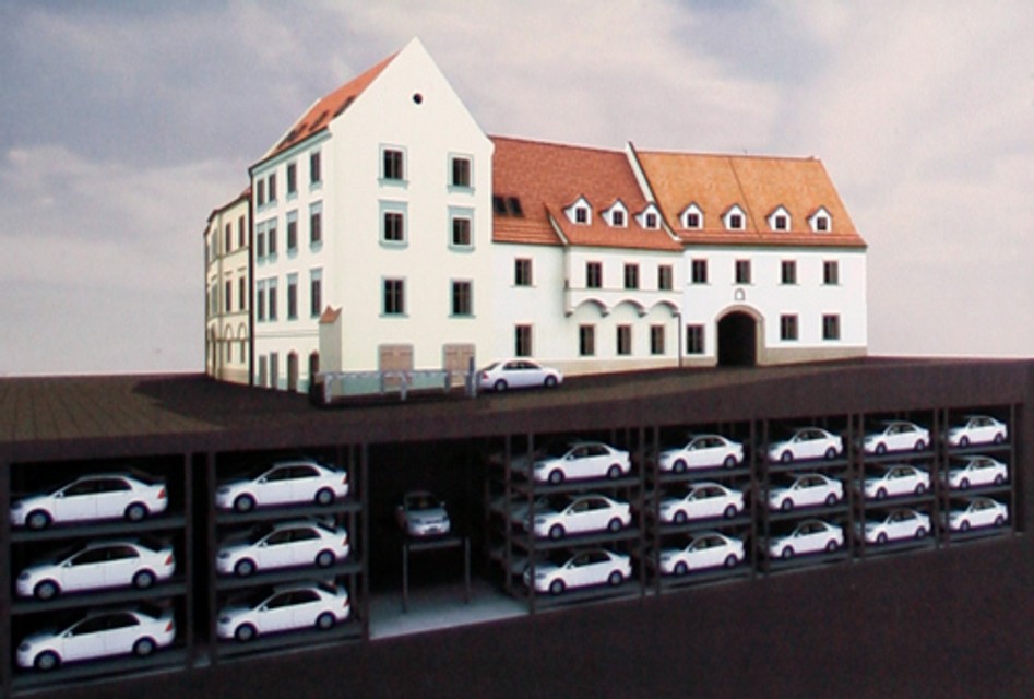 Víťazné návrhy verejnej architektonickej súťaže na využitie historických objektov na Františkánskom námestí 8, 9 a 10 rátajú s výstavbou parkovacích garáží. Záväzné nariadenie Starého Mesta však takú možnosť nepripúšťa.