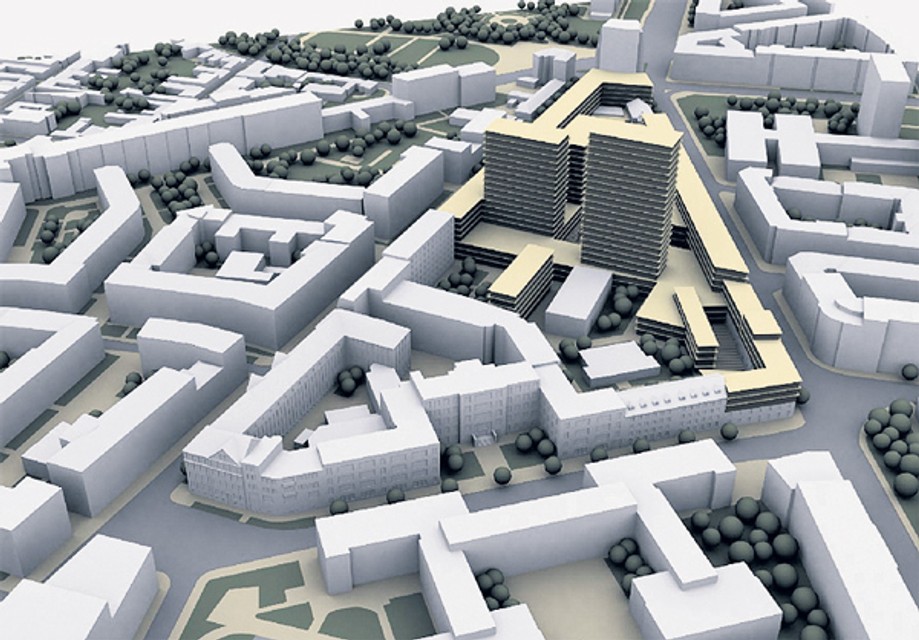 Na treťom podlaží z Radlinského ulice projekt navrhoval umiestniť športové priestory a reštauráciu. Dominanty riešeného centra majú tvoriť dve výškové časti polyfunkčného objektu.