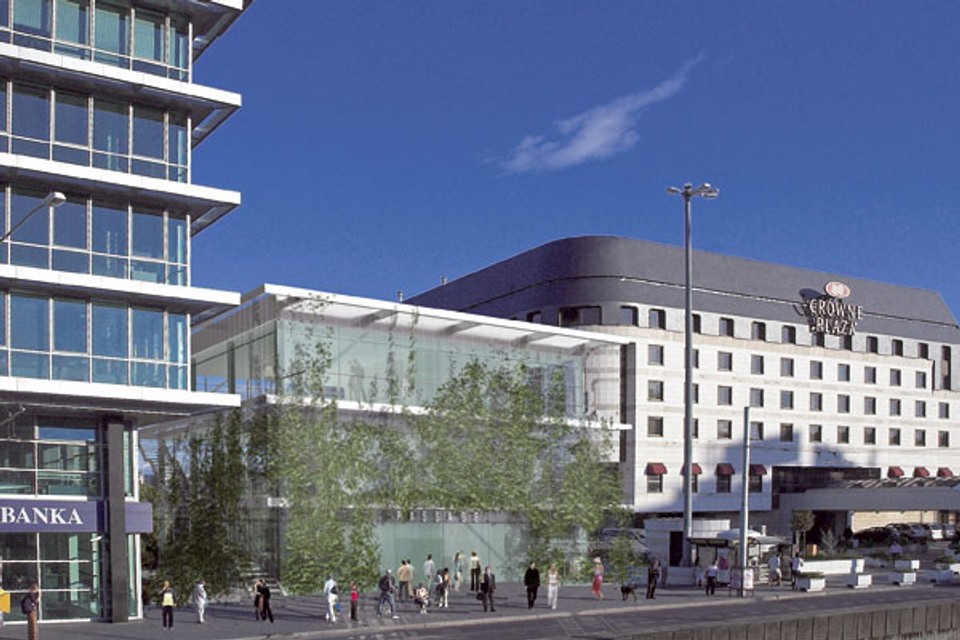 Pred niekoľkými mesiacmi bol tento priestor na Hodžovom námestí medzi Tatracentrom a hotelom Crown Plaza ohradený plotom, no výstavba sa nezačala. Projekt bol oproti pôvodnému plánu upravovaný, podľa informácií z roku 2003 malo ísť o neveľký objekt so štyrmi podlažiami a súčasťou prízemia mala byť zastávka MHD. Mal tu byť aj predpredaj lístkov na kultúrne podujatia, predaj tlače a verejné toalety. Ďalej sa tu rátalo s reštauráciou a s terasou tvoriacou súčasne aj kryt zastávky MHD.