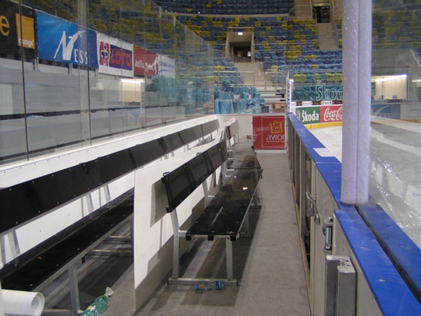Na prízemí štadióna (1. nadzemné podlažie) sú okrem ľadovej plochy aj hlavné vstupy, predaj lístkov, zásuvné tribúny pre 1506 miest, 10 šatní so zázemím, šatne rozhodcov, VIP, vchod pre imobilných, východy z únikových schodísk, miestnosť prvej pomoci, vrátnica, výťahy, Presscentrum a iné.