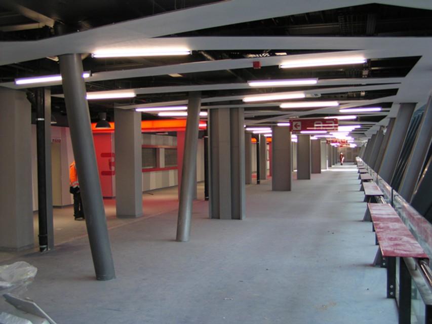 Pre verejnosť sú určené 2. a 3. nadzemné podlažie, kam sa vstupuje z Ulice odbojárov po zdvíhacích schodiskách s ôsmimi ramenami. Na 2. nadzemnom podlaží sa nachádzajú okrem tribún aj 4 bufety, 4 sociálne zariadenia pre ženy a 6 pre mužov. Na 3. nadzemnom podlaží je 8 bufetov, 6 sociálnych zariadení pre ženy a 4 pre mužov.