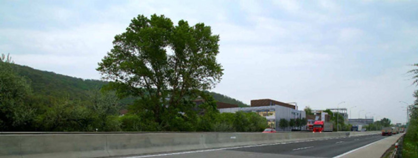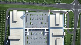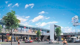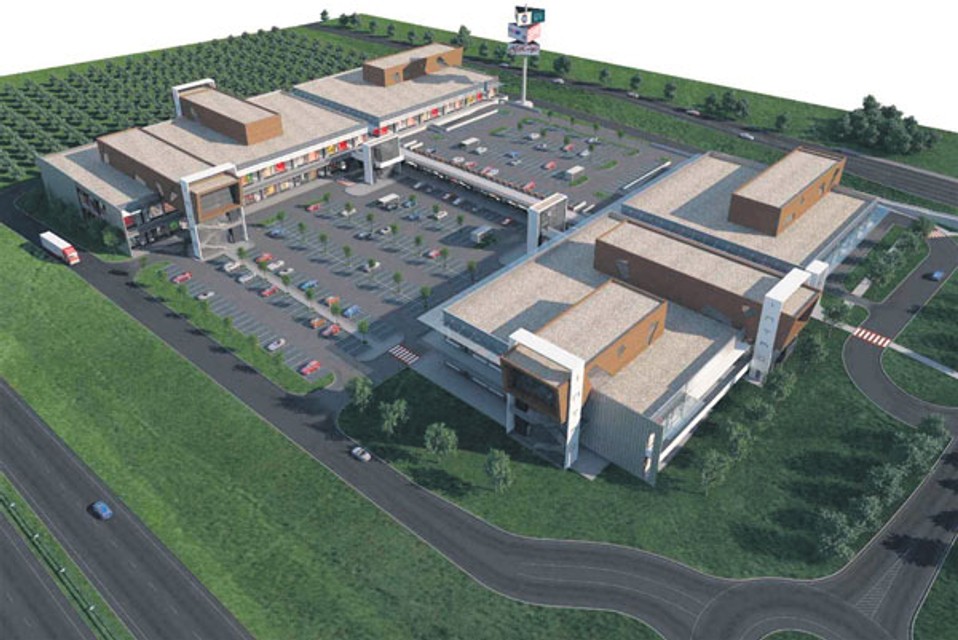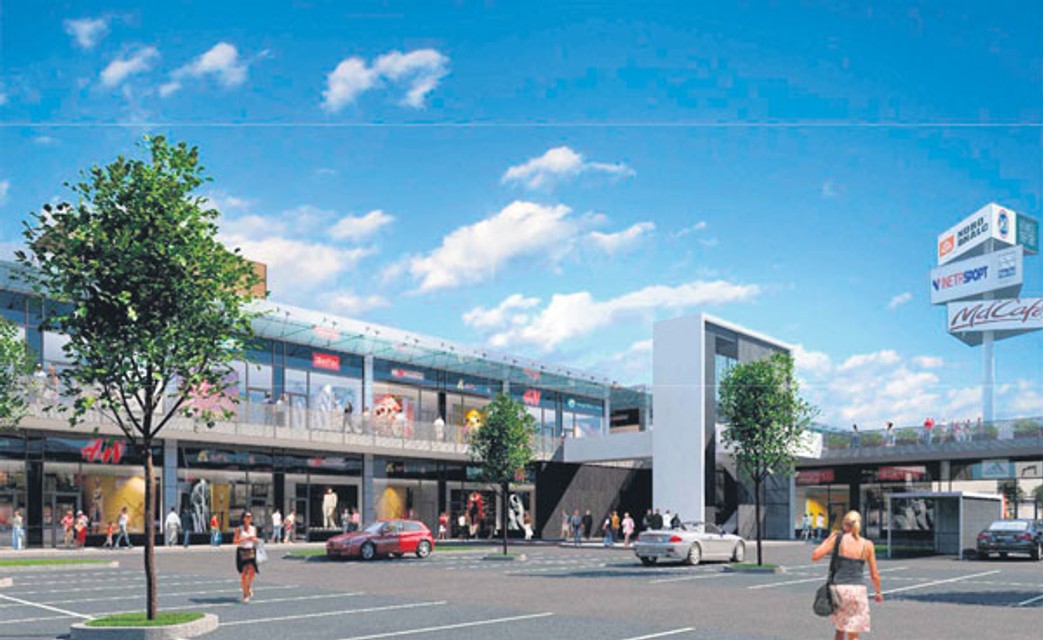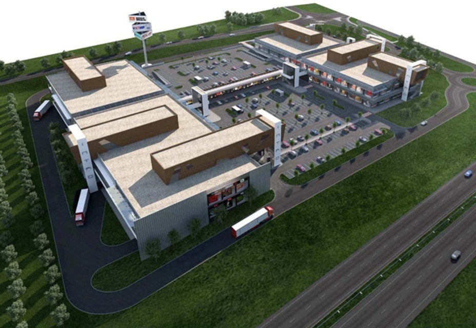 V dvoch krajných obchodných objektoch, osadených kolmo na Hodonínsku ulicu, majú byť na prvom a druhom poschodí obchody a služby. Medzi nimi je vytvorené „vnútorné námestie", ktoré je položené na dvoch výškových úrovniach. Na spodnej bude smerom k diaľnici umiestnené parkovisko, ďalšie parkovisko má byť na streche jednopodlažného objektu s obchodnými priestormi.