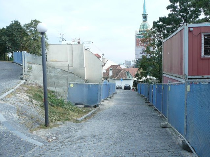 Turisti aj Bratislavčania chodia zatiaľ na Hrad okolo stavebnej jamy.