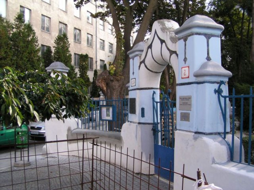 Secesný múr pri Modrom kostolíku už stojí, v pôvodnej bledomodrej farbe