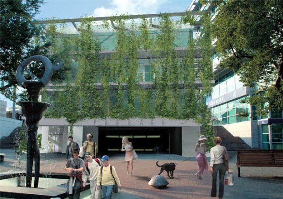 Nová stavba bude celá zo skla a od prvého poschodia sa stanú jej prirodzenou súčasťou popínavé rastliny, ktoré budovu postupne obrastú zo všetkých strán. Dielo navrhnuté architektonickým ateliérom Bogár Králik Urban zaplní priestor nad zanedbaným vchodom do podchodu, ktorý spája Poštovú ulicu s Hodžovým námestím. Kocka vytvorí bránu v smere k Prezidentskému palácu a na spôsob „živého plota" doplní prázdny priestor medzi susednými budovou. Architektom sa tak originálne podarilo vyplniť medzeru, ktorá je príliš úzka na výstavbu kamenného domu.