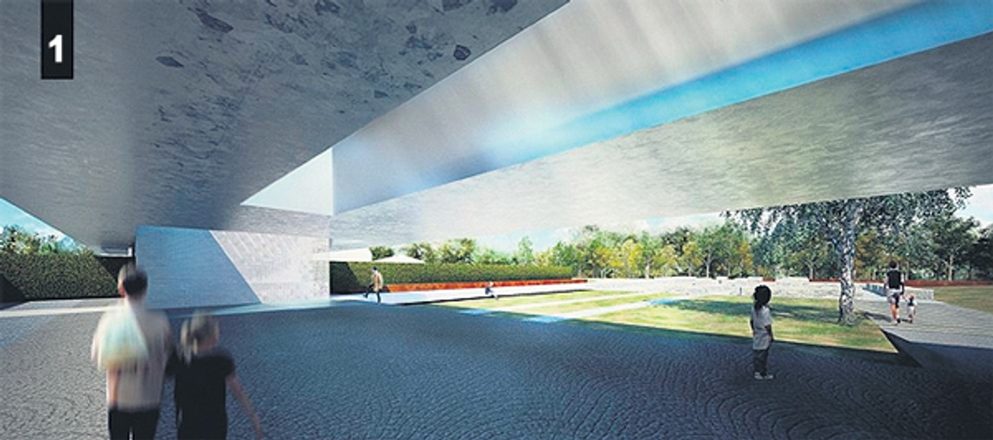 (1) Jednu 2. cenu získal návrh autorov M. Žitňanský, V. Šimkovič, P. Gonda, R. Šranko, M. Kollár a Ľ. Dubeňová. Zaujal myšlienkou levitujúceho objektu, ktorý ohraničuje areál voči veži kostola, ale nezaťažuje ho celou hmotou pôdorysu. Porota návrhu vyčítala nedoriešenie ohraničenia areálu či parkovanie, ktoré by priamo k nálezom pritiahlo autá.