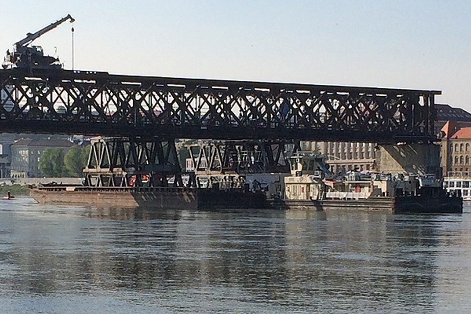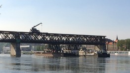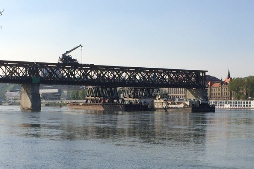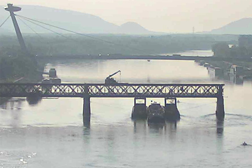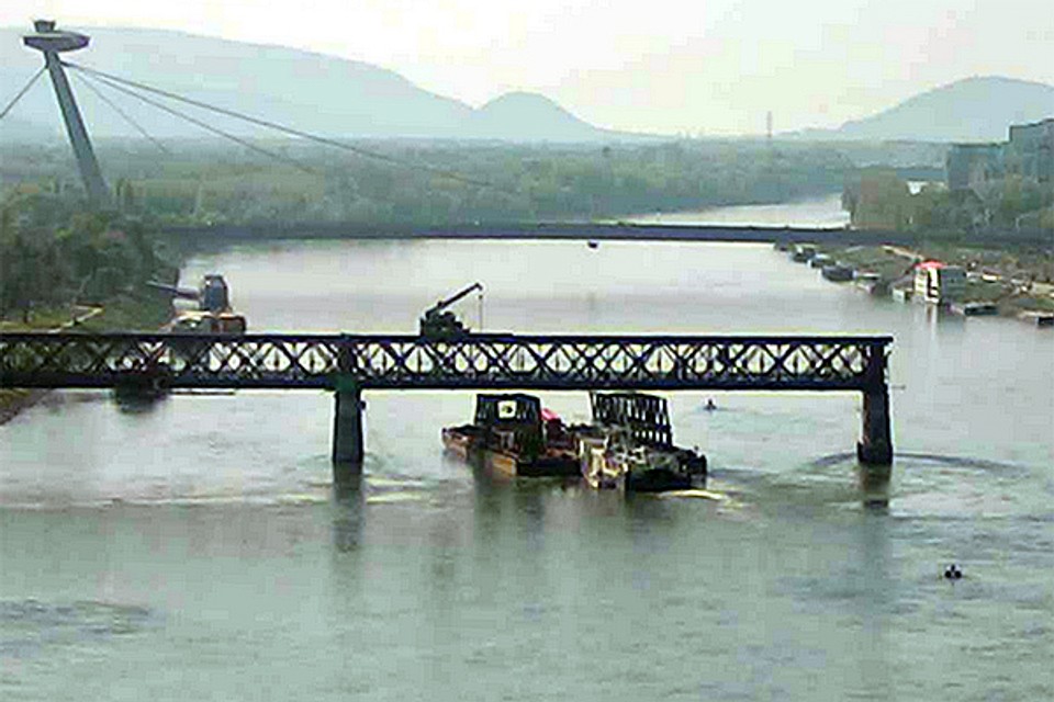 Krátko pred 14.00 h priplávalo pod 4. mostné pole demontážne súlodie tlačené remorkérom Spiš. Po ukotvení súlodia EUROVIA SK, a.s., ktorá jen zhotoviteľom stavby tzv. Petržalskej električky, môže pokračovať v demontáži Starého mosta. Práce na odstraňovaní Starého mosta boli prerušené pred týždňom v pondelok. "Demontáž štvrtého poľa bola pozastavená a bude obnovená v pondelok o 13:00 h na základe plavebného opatrenia Dopravného úradu. Táto skutočnosť spôsobila na predmetných prácach časový sklz 10 dní," uviedla pre Bratislavské noviny minulý týždeň PR manažérka EUROVIA SK Lucia Komanická.