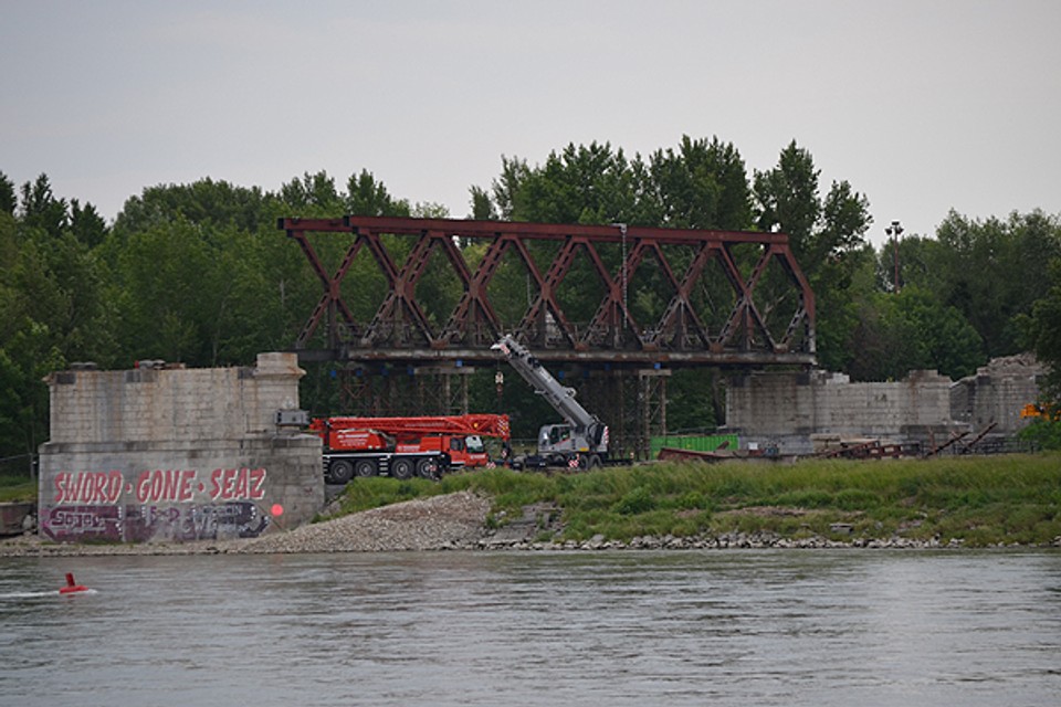Demontuje sa už aj posledné mostné pole starého mosta - starymost05062014_1