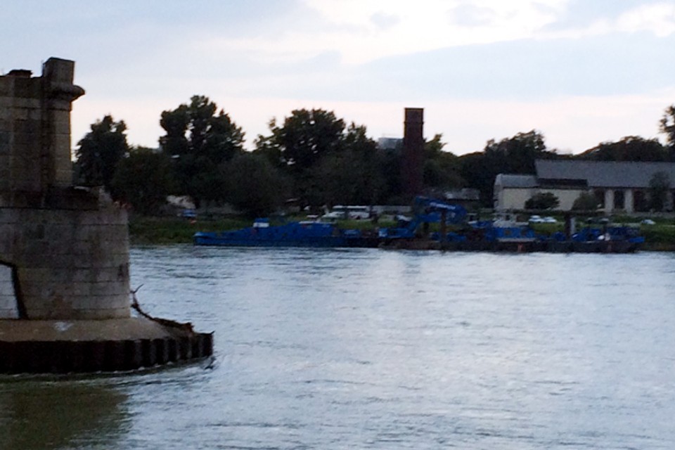 Pri petržalskom brehu nad piliermi Starého mosta vo štvrtok podvečer zakotvila špeciálna lodná plošina LUDWIG s bagrami na palube, ktorá bude použitá na demontáž pilierov mosta č. 3 a 4. Loď vrátane tlačného člna firmy Felbermayr plávajú pod rakúskou vlajkou.