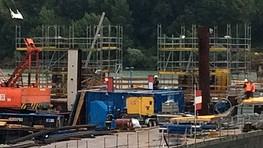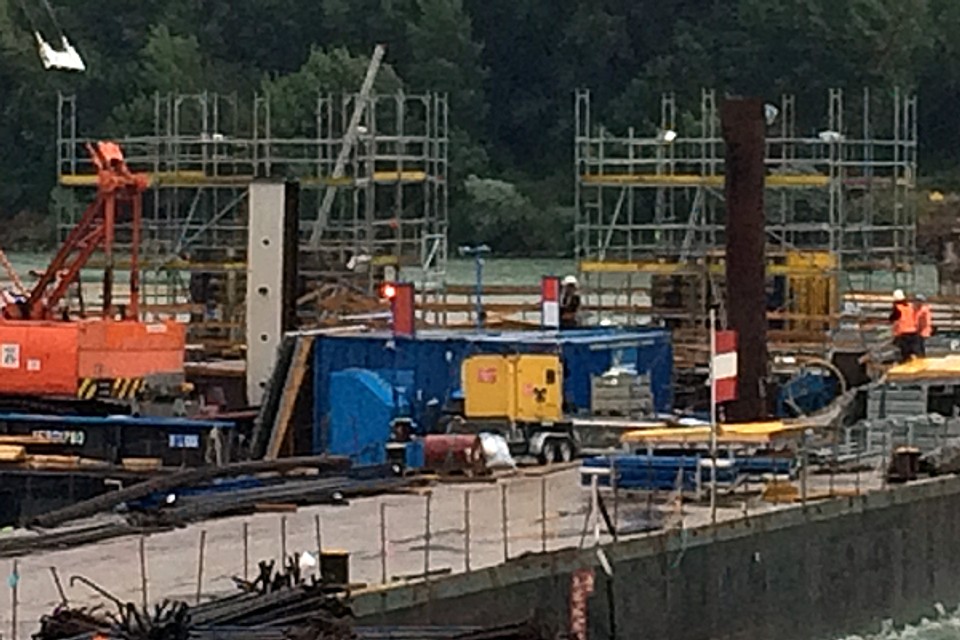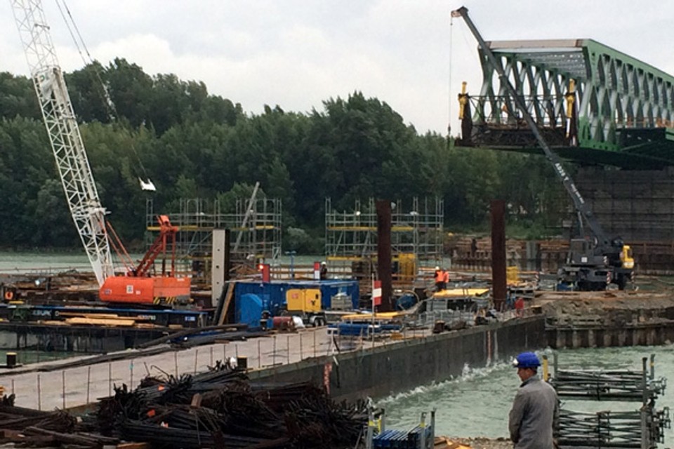 Základy piliera č. 34 sú hotové, pokračuje sa nad hladinou