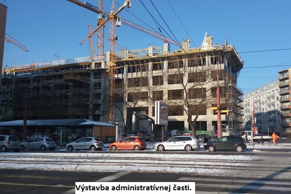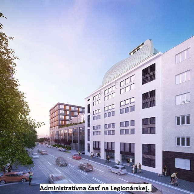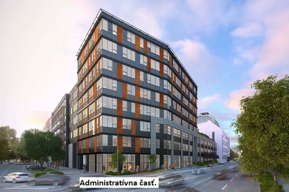 Administratívna časť projektu je vo výstavbe celá a na ôsmich podlažiach ponúkne 9500 štvorcových metrov kancelárskych priestorov, 900 štvorcových metrov obchodných priestorov a 226 parkovacích miest.
