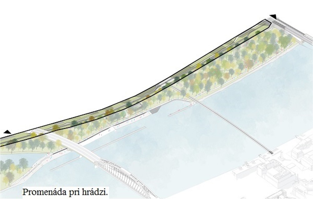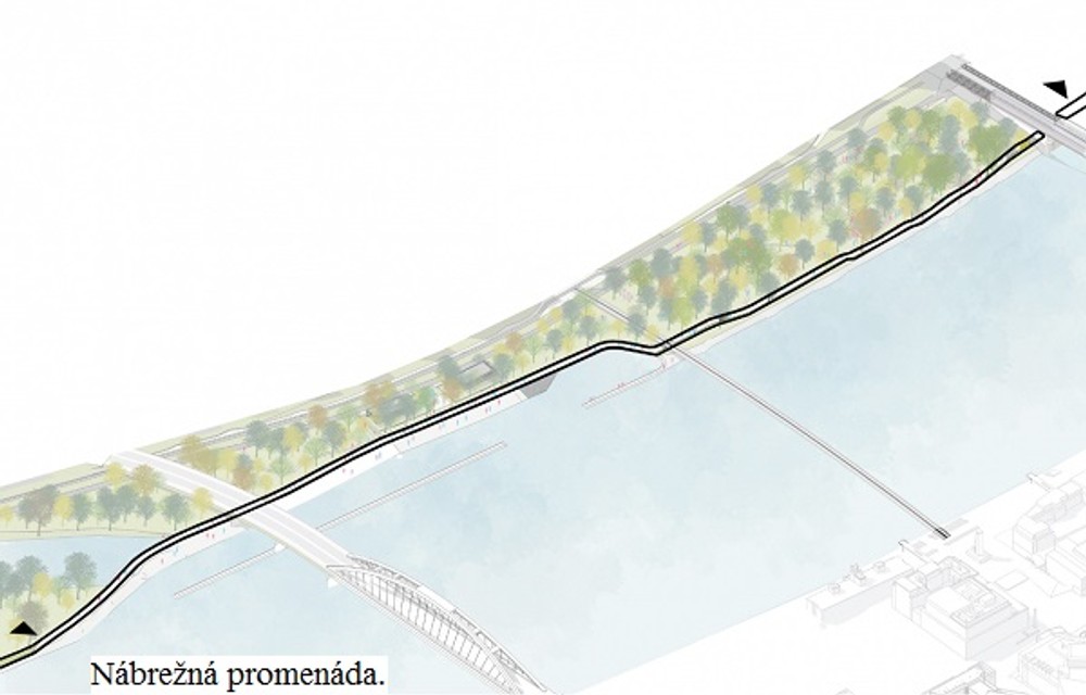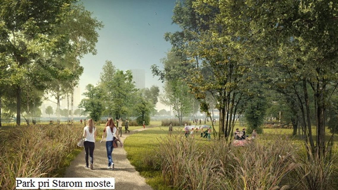 A ako by malo Nové Lido vyzerať? Ak by sme išli smerom od Starého mosta, najskôr by sme sa prešli prírodným parkom. Jeho základom by mal byť zľahka upravený lužný les slúžiaci na šport, oddych a prechádzky. Park má čo najviac odrážať súčasný organický stav, no priestor by presvetlili a pribudli by tu i chodníky.