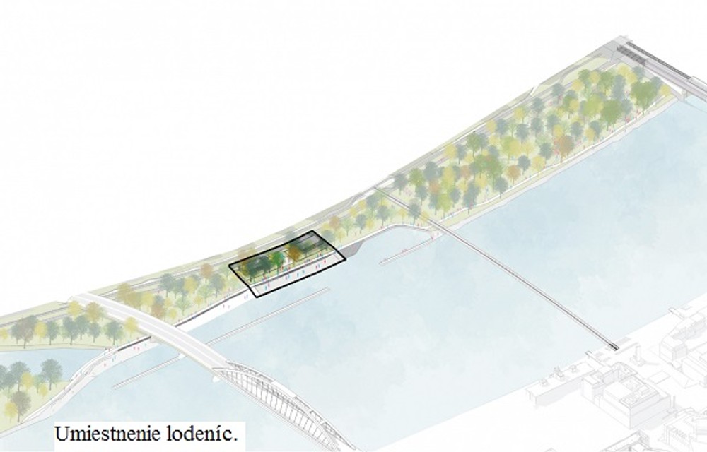 Na mieste zaniknutého kúpaliska Lido by mala byť opäť verejná pláž. Začínať by mala pred lodenicami a končiť za mostom Apollo, čo je približná pôvodná poloha pláže. Štúdia navrhuje lodenice vodáckych klubov zachovať a okrem toho vytvoriť malý turistický prístav pre niekoľko rekreačných člnov. Popri nábreží by mala vzniknúť súvislá nábrežná promenáda slúžiaca chodcom i cyklistom. Promenáda by za mostom Apollo (v chránenom území Soví les) pozvoľna prešla do turistického chodníka. Ďalšia promenáda by mala byť viesť popri hrádzi, čím by sa územie napojilo na ďalšie chodníky a cyklotrasy v okolí. Iniciatívy navrhujú oživiť aj Ovsišťské rameno v jeho pôvodnej trase. Toto rameno Dunaja bolo pred desiatkami rokov prerušené kvôli výstavbe Prístavného mosta a nikdy sa neobnovilo.