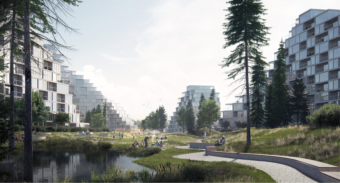 Podľa architektov má komplex pripomínať alpské údolia a obrysy hôr, a zároveň spájať výškové budovy s nižšími a krajinou. „Centrálne údolie ponúka spoločný park a záhradu s rekreačnými krajinnými prvkami, ako je jazero, stromy, trávniky s integrovanými športovými prvkami a ihriskami,“ uvádza sa na stránke spoločnosti.
