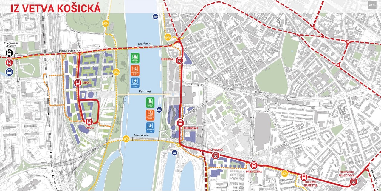 „Prudko sa rozvíjajúce územie v zónach Čulenova, Pribinova aj Nové Lido na petržalskej strane prinesie prirodzene v blízkej budúcnosti zvýšené nároky na dopravnú obslužnosť,“ hovorí výkonný riaditeľ JTRE Pavel Pelikán. „Pre lepšiu predstavu, hovoríme o území s viac ako 91 000 zamestnancami a cez 17 000 rezidentmi, a nemožno zabudnúť ani na rastúcu návštevnosť – naše prepočty hovoria až o takmer 100 000 návštevníkoch nového centra denne. Dopravnú obslužnosť takéhoto územia nemožno riešiť rozvojom automobilovej dopravy. Najlogickejším riešením je premyslený rozvoj električkovej siete, ako nosného systému Bratislavy, a efektívny systém P+R (zaparkuj a použi MHD),“ vysvetľuje Pelikán.