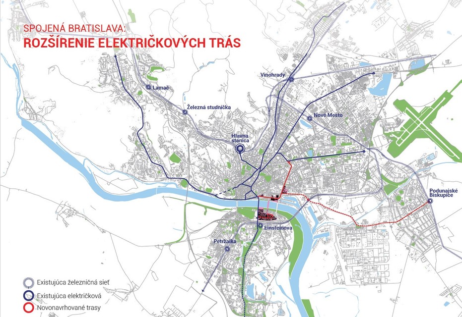 „Súčasný stav koľajovej dopravy nezohľadňuje rozvoj a potreby mesta v priestore, kde vzniká nové centrum. My našimi návrhmi nechceme riešiť iba obsluhu rozvíjajúcich sa území, ale pozeráme sa dopravu v meste komplexne a v širšom meradle. Naše návrhy električkových tratí vytvárajú možnosti rozvoja električky juhovýchodným smerom Vrakuňa, Podunajské Biskupice a tiež predpoklady pre jej začlenenie do systému integrovanej dopravy,“ vysvetľuje výkonný riaditeľ JTRE . „Vznik ďalších radiál zároveň umožňuje pretrasovávať linky v prípade výpadku, čo má vplyv na bezpečnosť aj plynulosť premávky. Táto možnosť teraz Bratislave chýba,“ dodáva.