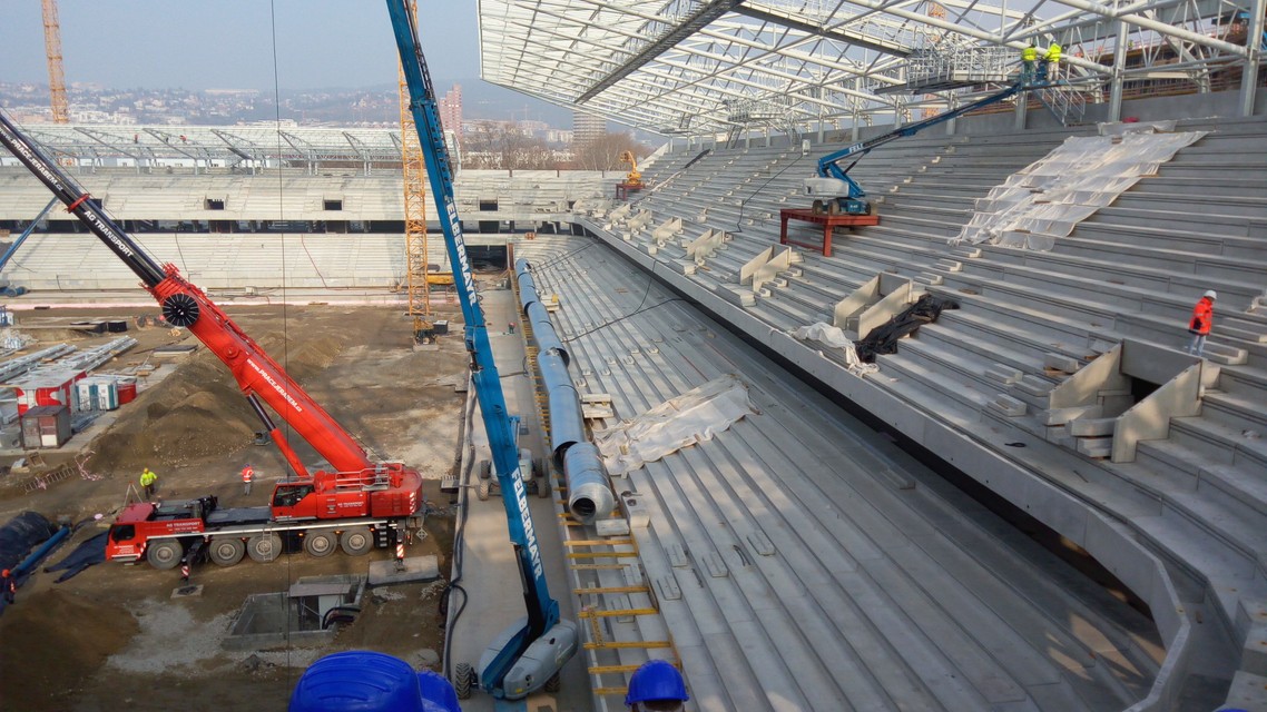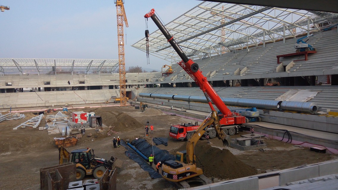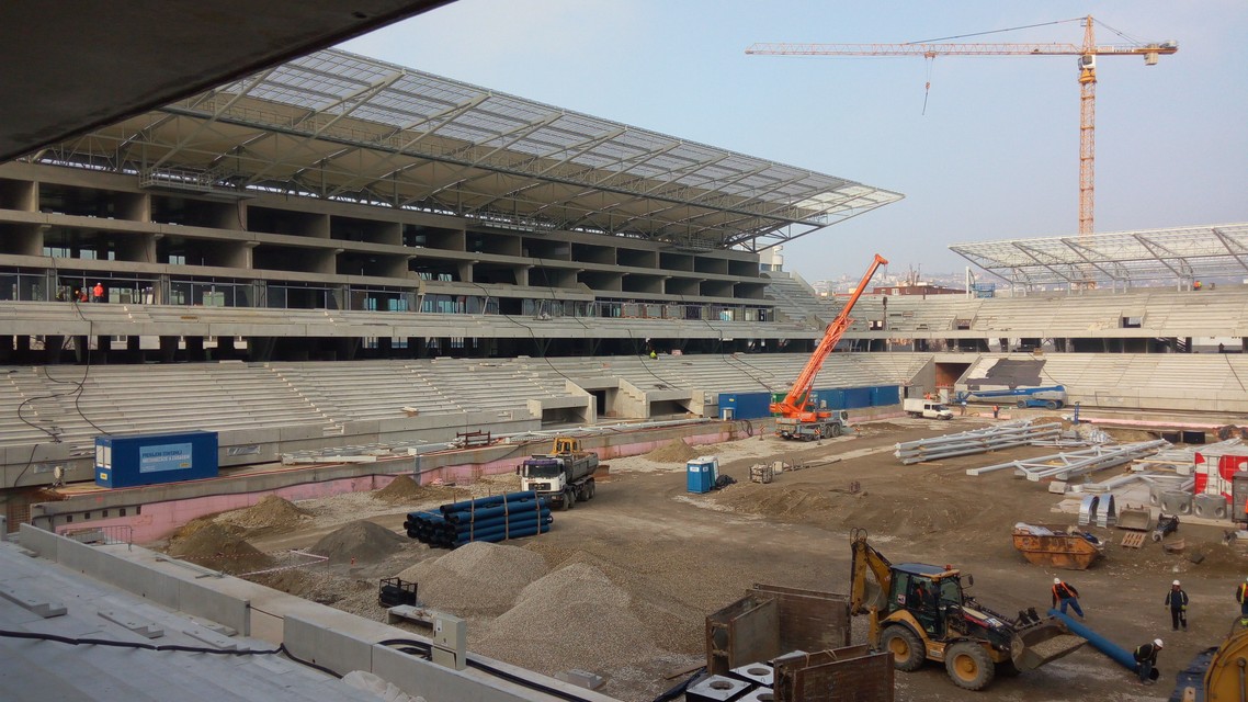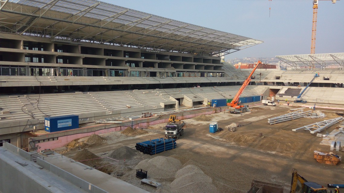 „Stále držíme termín koniec roka, ak sa bude dať, bude to skôr, no záleží aj od toho, ako bude prebiehať verejné obstarávanie, takže skorší termín sľubovať nechcem,“ uviedol zástupca investora. Hrubá stavba štadióna má byť hotová do polovice augusta, vybavenie futbalovej arény, zodpovedajúce najnovším nárokom Únie európskych futbalových asociácií (UEFA), by malo byť hotové do konca kalendárneho roka. V súčasnosti sa pracuje nielen na zastrešení, tribúnach a zázemí štadióna, ale aj na ploche. „Začalo sa pracovať aj na príprave drenáže pre trávnik,“ priblížil Komorník aktuálne práce. Doteraz sa podľa jeho slov na prácach preinvestovalo približne 35 miliónov eur.