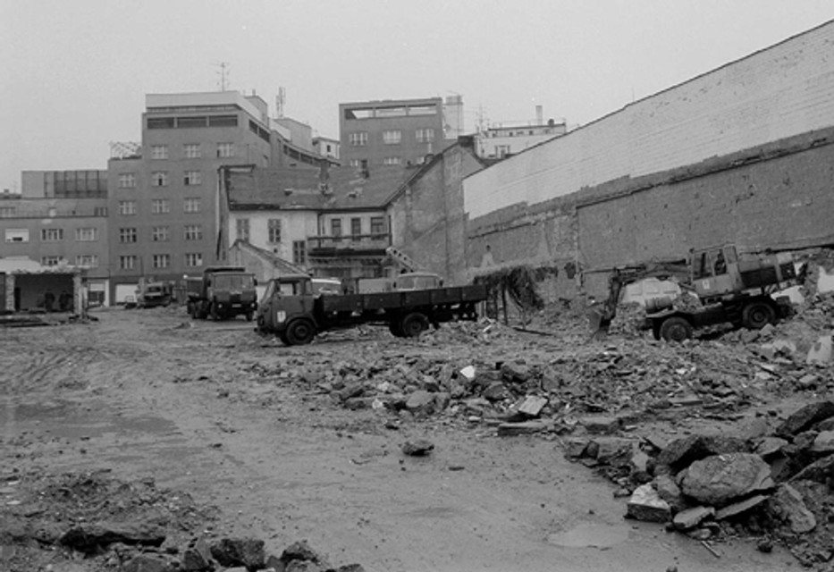 Na tomto mieste Obchodnej ulice stáli 4 staré domy, ktoré nahradí nové obchodné centrum.