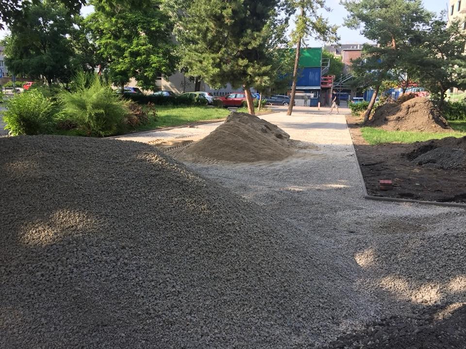 "V parku na bola na niektorých chodníkoch položená vrchná vápencová vrstva mlátu, teda kamenného chodníka rôznej frakcie, ktorú použili pri výstavbe parkov a záhrad v Schlosshofe či Schönbrunne pri Viedni. Teda žiadny betón a dlažba, ako mylne informujú niektorí nesprávne informovaní užívatelia sociálnych sietí, " informovala mestská časť.