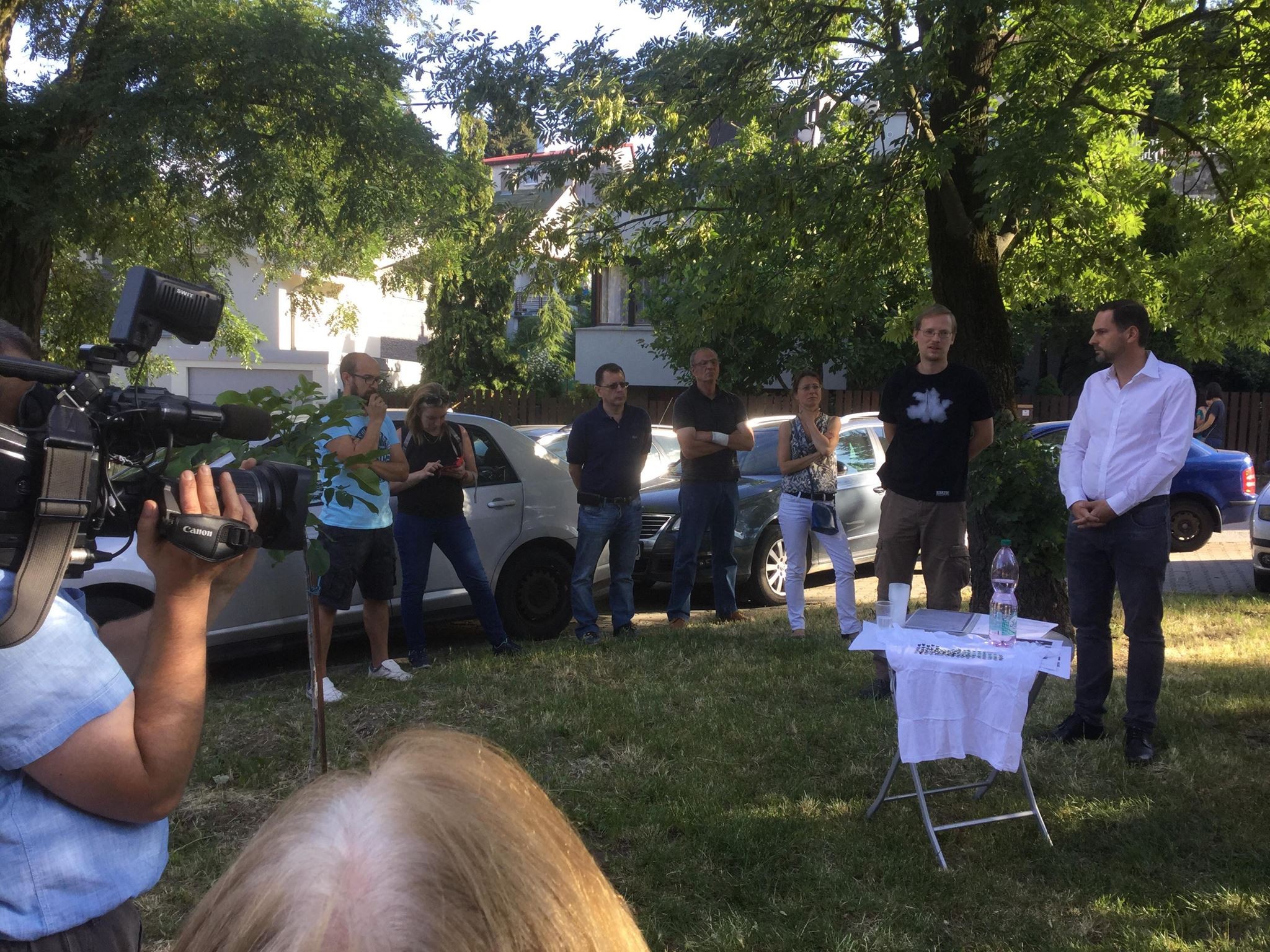 Protest organizovalo občianske združenie Za lepšiu Kolibu na čele s miestnym poslancom Martinom Vlačikym a prišiel ho podporiť aj starosta Rudolf Kusý.