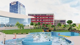 Rekreačný bazén má byť vybavený rôznymi atrakciami, doskou na skákanie, vodnými atrakciami, vodopádovou stenou, lezeckou stenou a hydromasážnymi tryskami. Vybavenie bude orientované tak, aby uspokojilo záujmy návštevníkov rôznych vekových kategórií. Bazén bude voľného organického tvaru a dopĺňať ho má stredový ostrovček so zeleňou, prístupný cez drevené lávky.