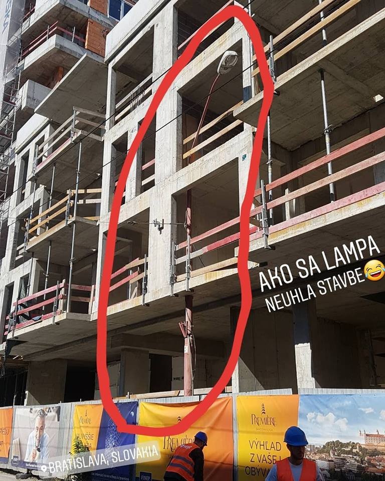 Čo tam preboha robí? Zrejme túto otázku ste si položili i vy, keď ste zbadali fotografiu, ktorá sa ako blesk šíri na sociálnych sieťach. Je na nej stavba výškovej budovy na Šancovej ulici v Bratislave, no čo pôsobí naozaj zaujímavo, stavbári doslova obstavali lampu verejného osvetlenia, ktorá teraz vedie cez budovu. Čo na to developer stavby?