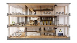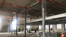 "Na 2. nadzemnom podlaží sa budú nachádzať administratívne priestory - je tu vybudovaná horizontálna plošina, ktorá priestor delí na 2.úrovne - v spodnej časti budú toalety, kuchynky a nad ňou zasadačky, oddychové priestory," hovorí architekt Ivan Masár. Tretie poschodie tvorí železobetónový strop, poschodie je z dierovaných tehál s cieľom zlepšiť tepelno-technické vlastnosti obvodových múrov.Nachádza sa tu aj centrálna strojovňa vzduchotechniky.