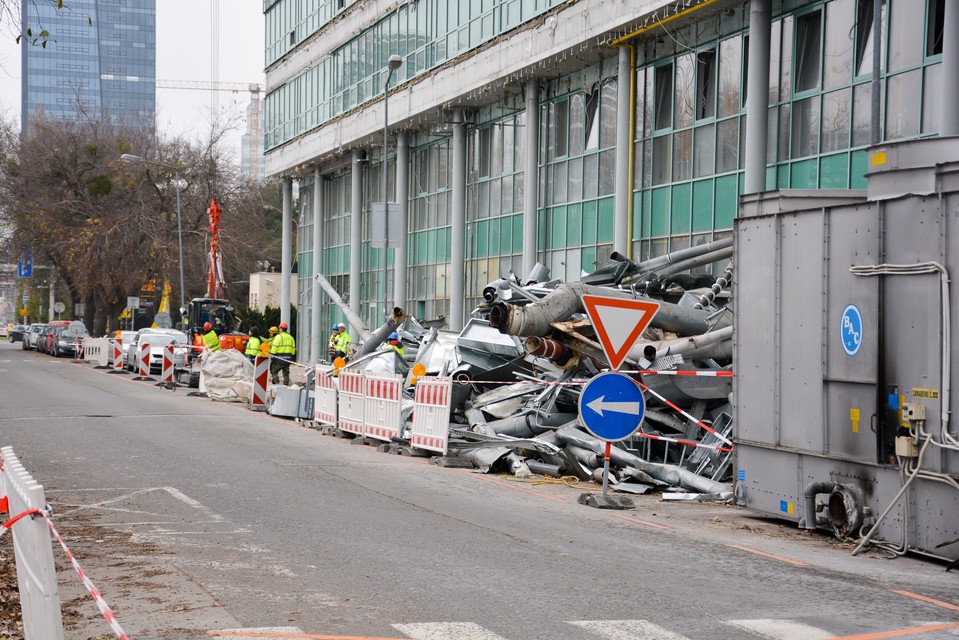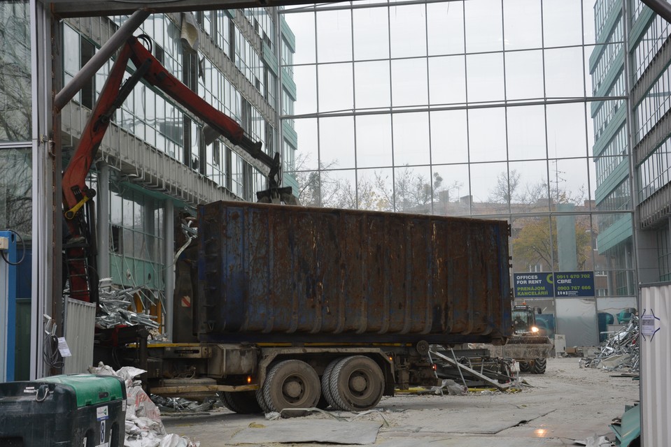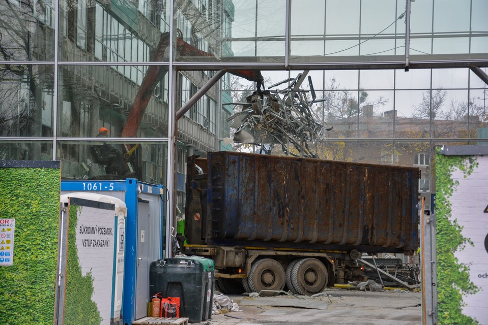 “Práce, ktoré sa na projekte rozbehli v septembri tohto roku, pokračujú v súlade s plánom. Prebieha čistenie a vypratávanie vnútra budovy. Zároveň dochádza k odstraňovaniu kovových prvkov a zateplenia z fasády. V priestore budovy je postavený aj malý žeriav, ktorý nám pomáha s odstraňovaním technológií zo strechy budovy, v neskorších mesiacoch bude využitý aj na ďalšie práce. Určité práce sa nám podarilo spraviť skôr, ako sme predpokladali, čo nám pravdepodobne ešte pre koncom roka umožní venovať sa rozobratiu ustúpeného podlažia, pôjde o odstránenie okien a plochy podlažia,” povedala nám Country Marketing & PR Manager HB Reavis Martina Jamrichová.