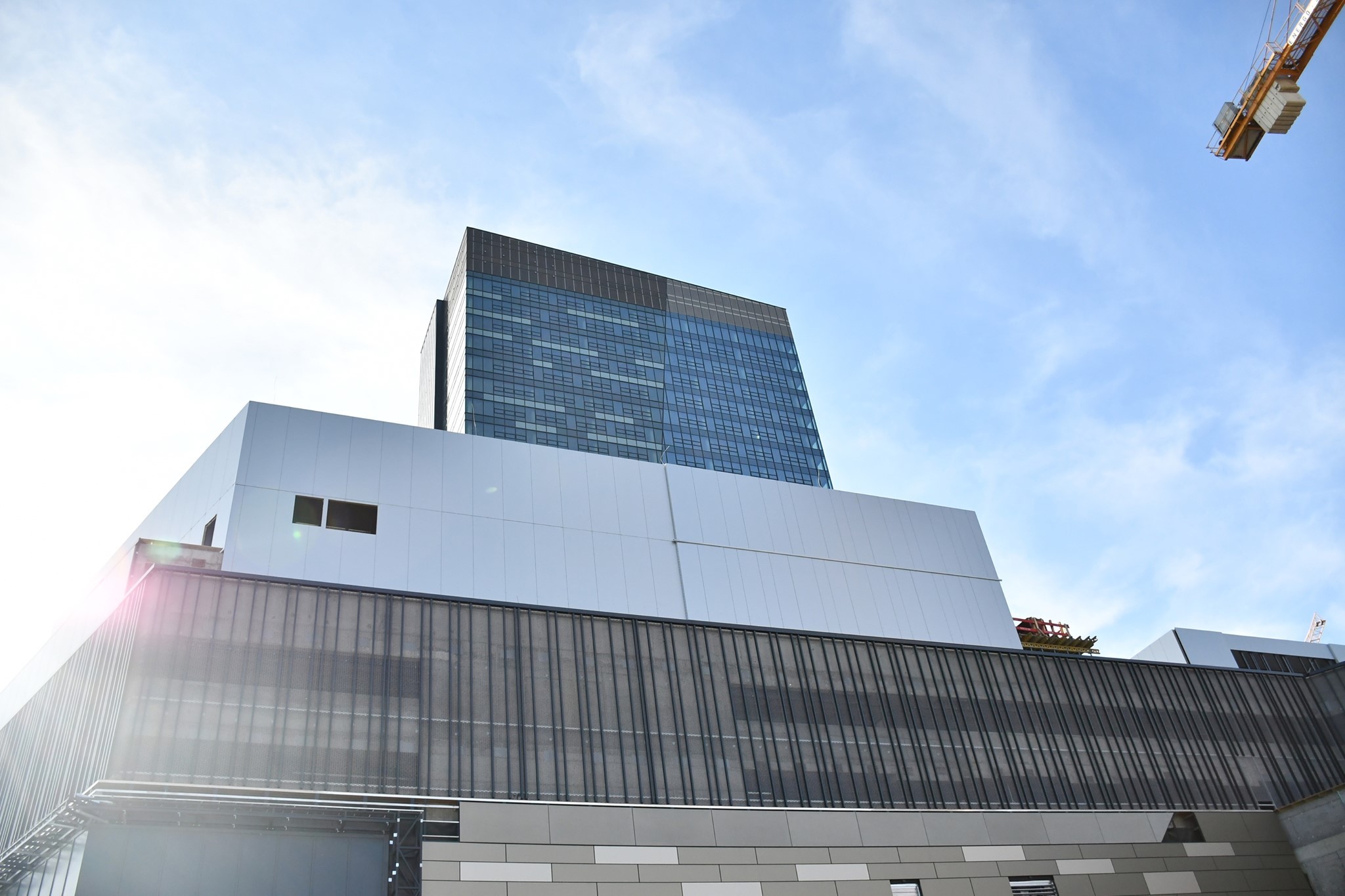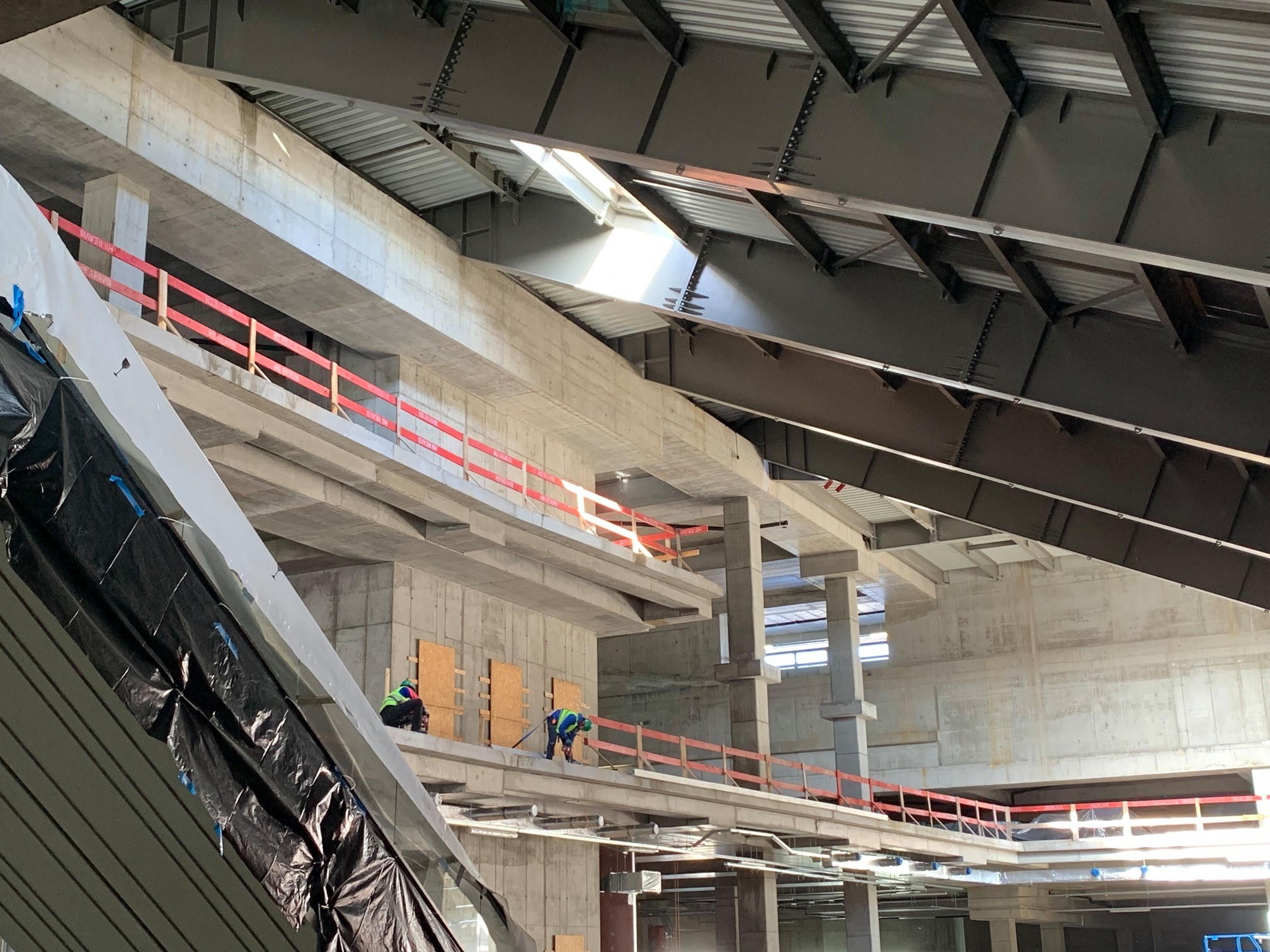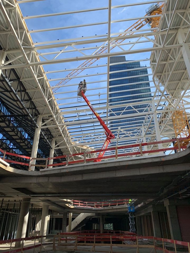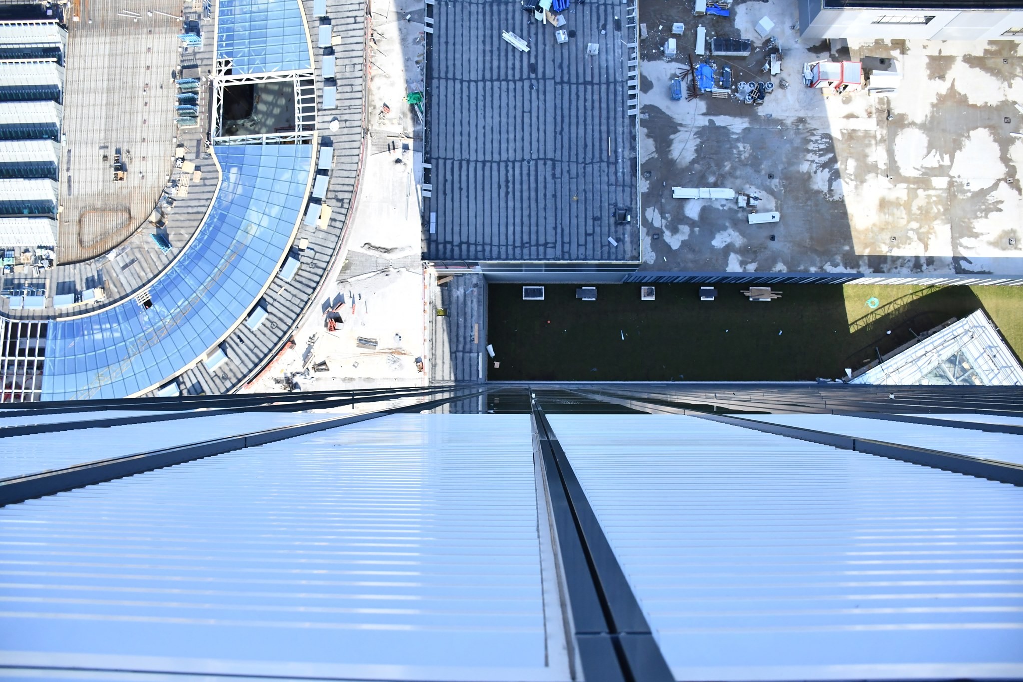 Pohľad zo strechy Nivy Tower na rýchlorastúce prestrešenie tržnice a foodcourtu s plochou takmer 7.000 m2: