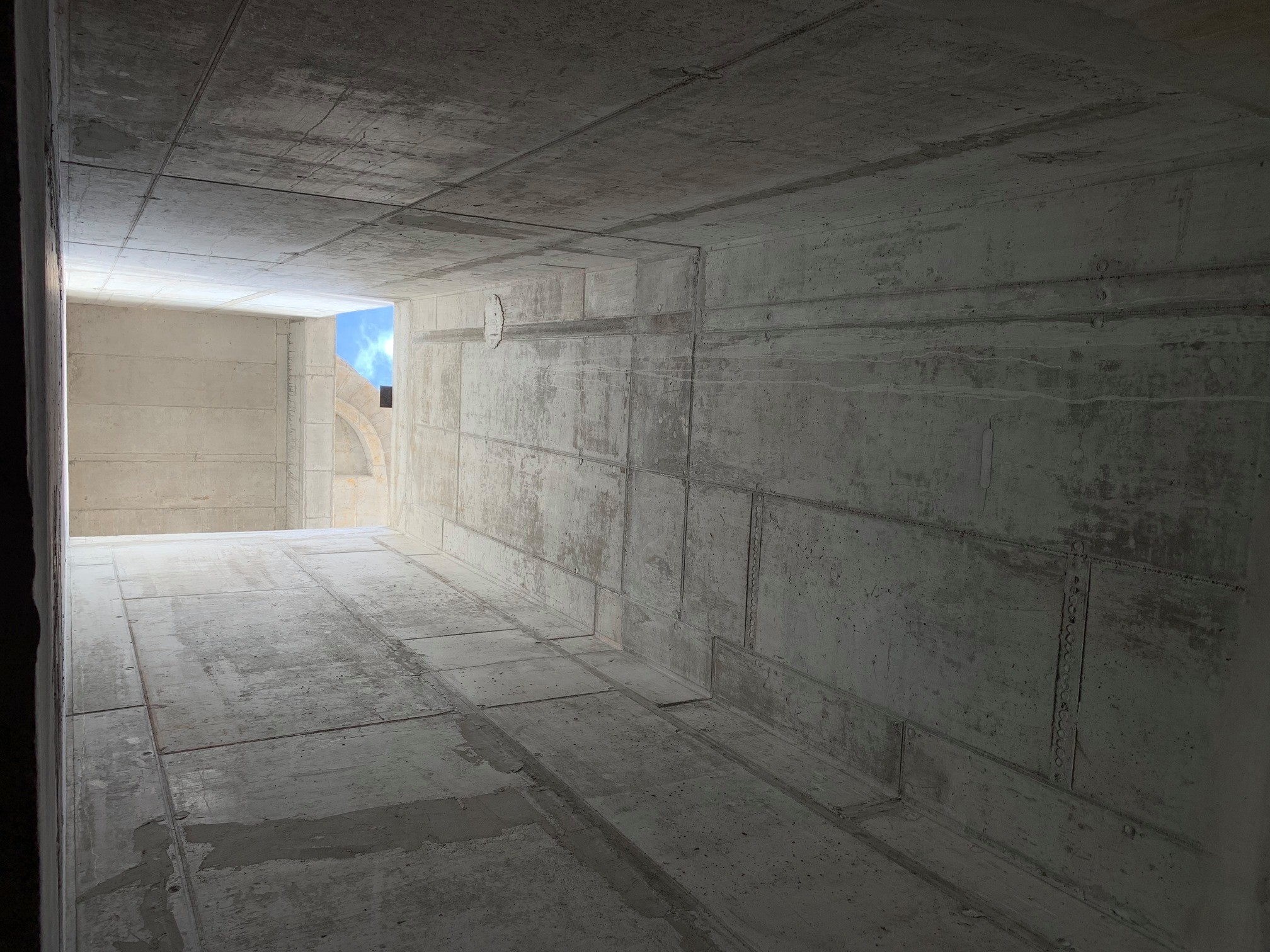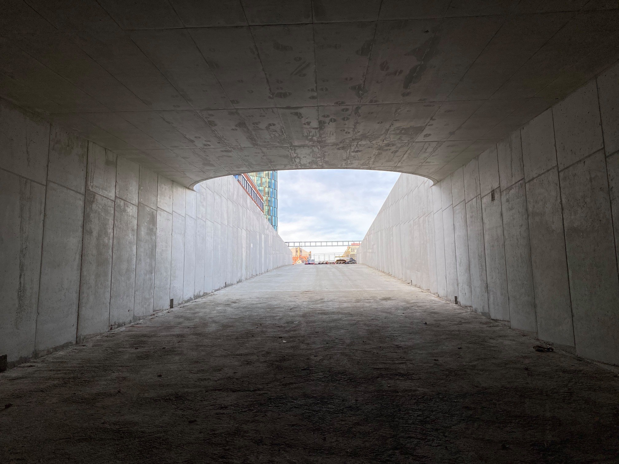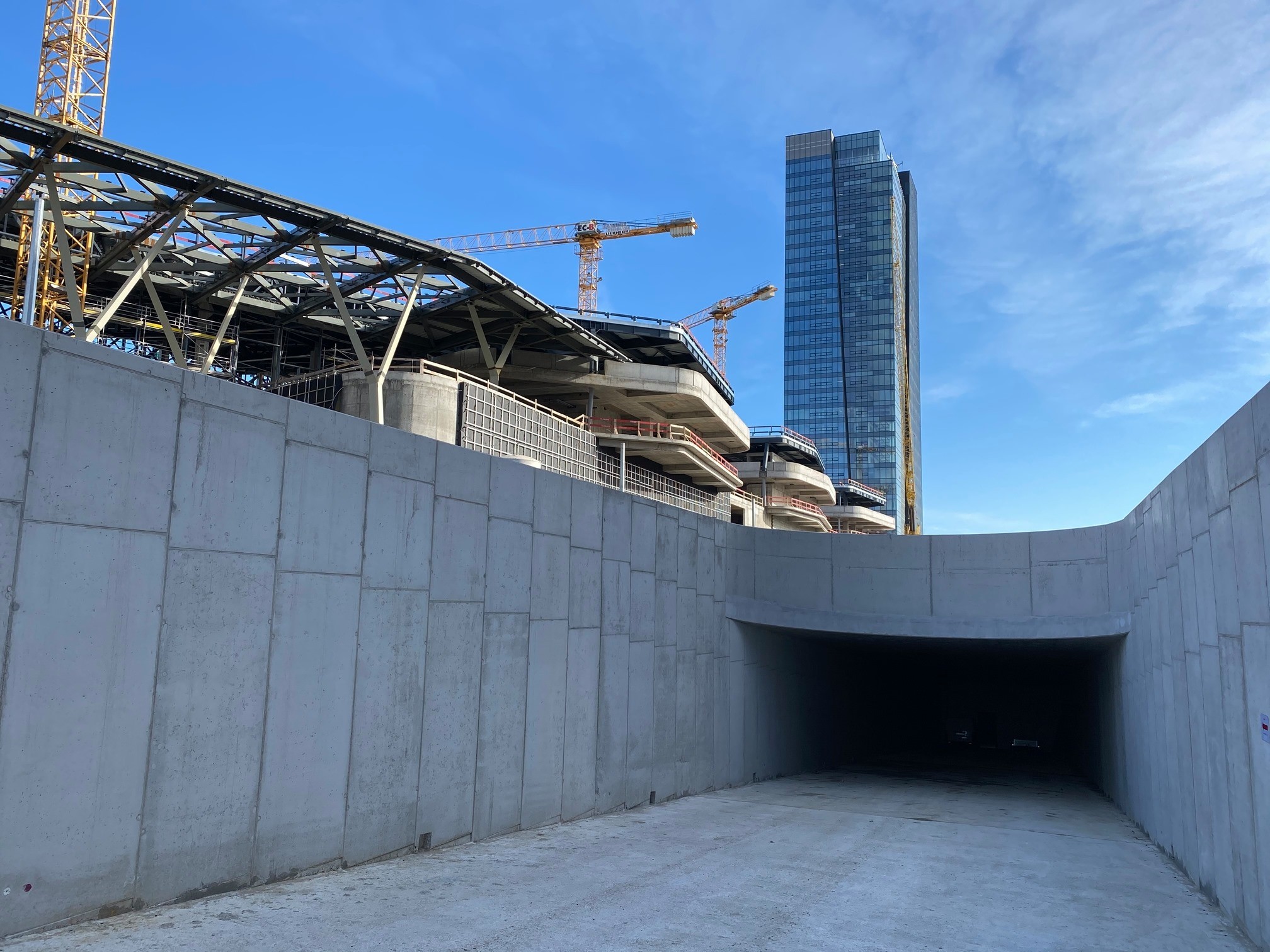 Zjazdová rampa do podzemnej kruhovej križovatky čaká už len na natiahnutie povrchov a dopravné značenie: