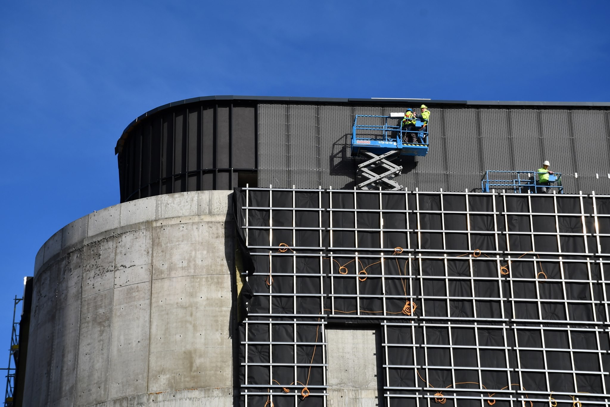 Na priečelí Stanice Nivy inštalujú tzv. ťahokov, ktorý v tejto časti za sebou skrýva jednotlivé technológie: