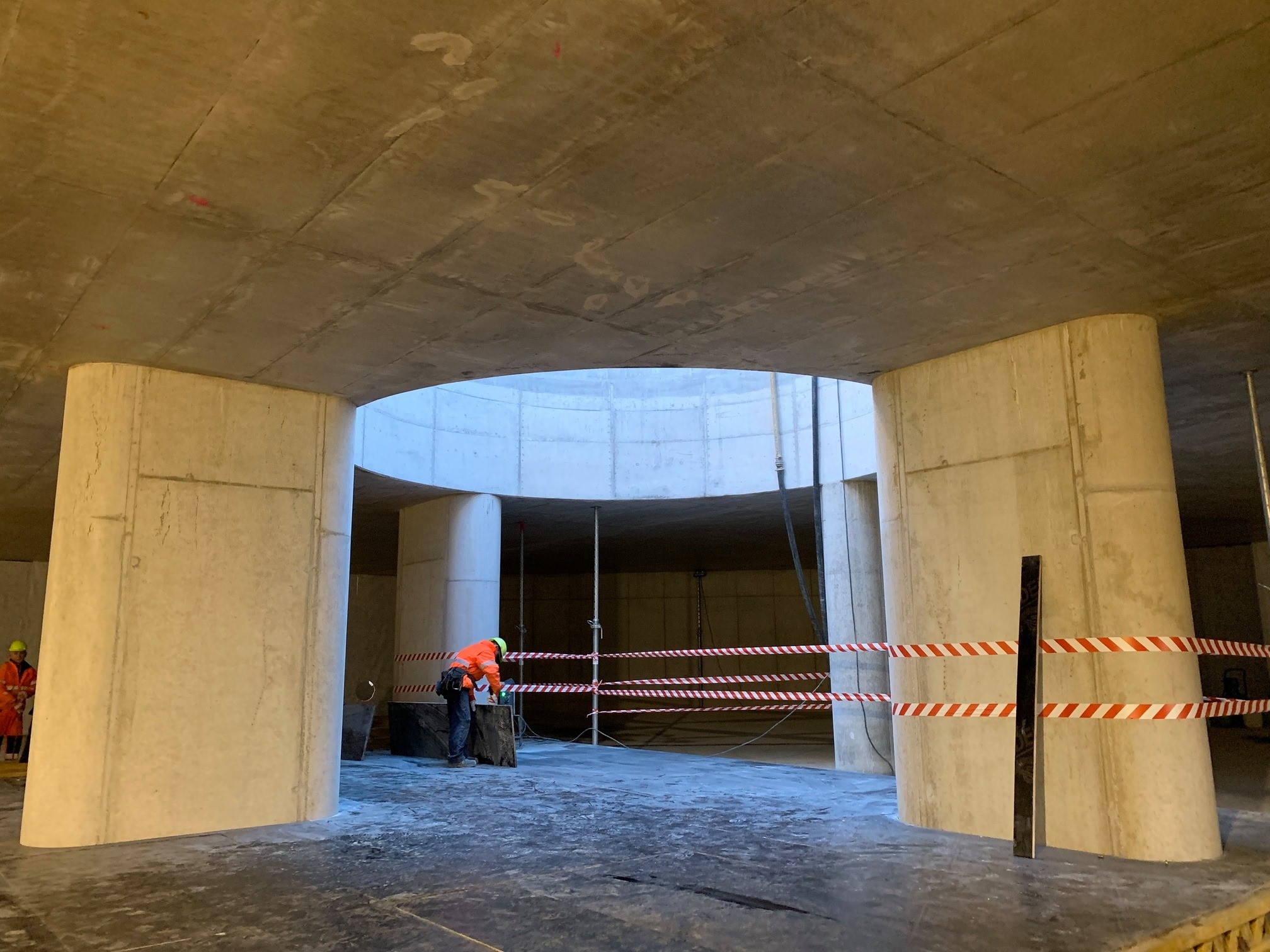 Samotná kruhová križovatka sa nachádza približne 13 metrov pod povrchom ulice. Aktuálne prebiehajú spätné zásypy kruhového objazdu: